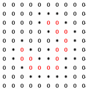 由0、1组成的10*10矩阵,数与数之间用一个空格分隔。