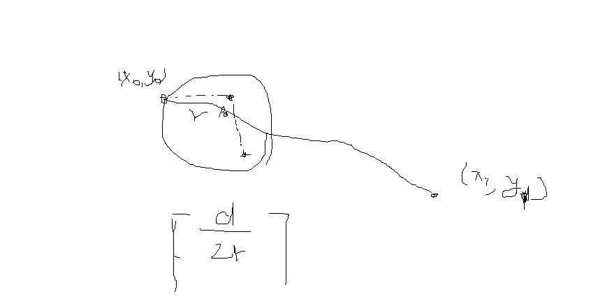 所有测试点满足 1≤r≤10^5,−10^5≤x0,y0,x1,y1≤10^5。