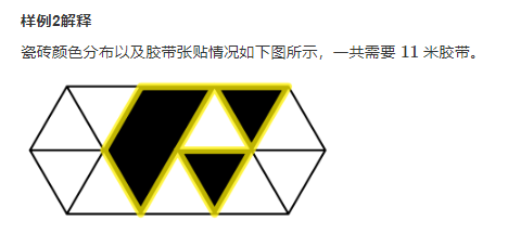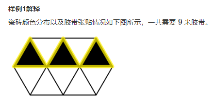 其中,上排左起第一个三角形瓷砖指向上方,每对相邻三角形瓷砖(即包含公共边的三角形瓷砖)的指向都相反(可参照图例)。