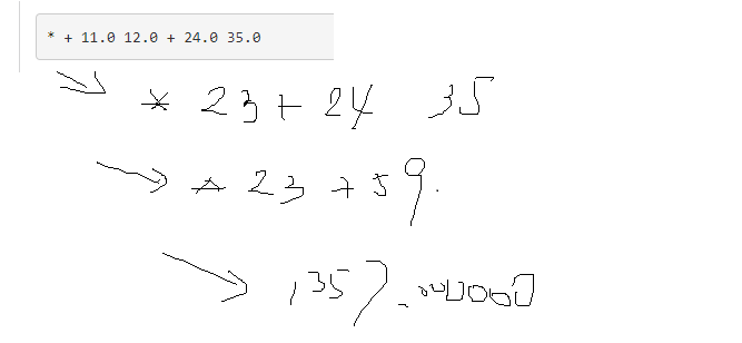 输入为一行,其中运算符和运算数之间都用空格分隔,运算数是浮点数。