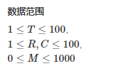 每组数据的接下来R行数据,从北向南依次描述每行花生苗的情况。每行数据有C个整数,按从西向东的顺序描述了该行每株花生苗上的花生数目M。