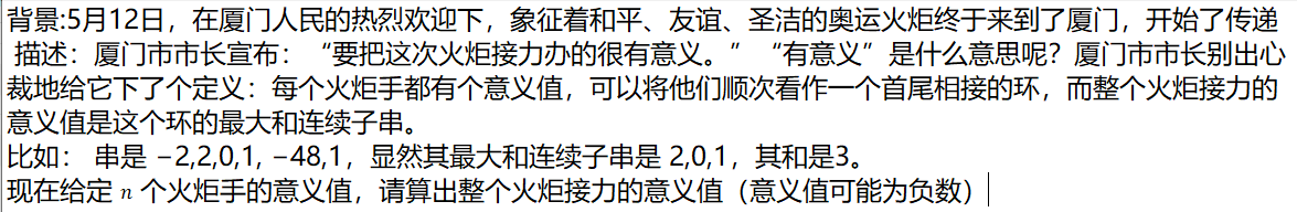 第二行有n个整数,第i 个整数为 ai,表示 第i个火炬手的意义。