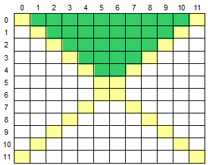 数组的两条对角线将数组分为了上下左右四个部分,如下图所示,黄色部分为对角线,绿色部分为上方区域: