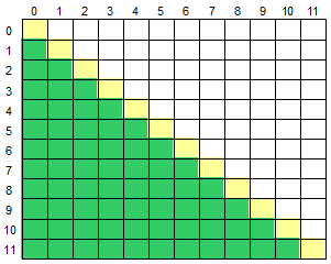 左下半部分是指主对角线下方的部分,如下图所示,黄色部分为对角线,绿色部分为左下半部分: