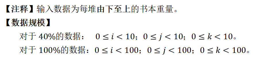 第二行至第四行分别为每堆由下至上的书本的重量。