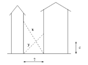 已知两个楼梯的长度和他们交点离地面的高度,求两栋楼之间的距离。
