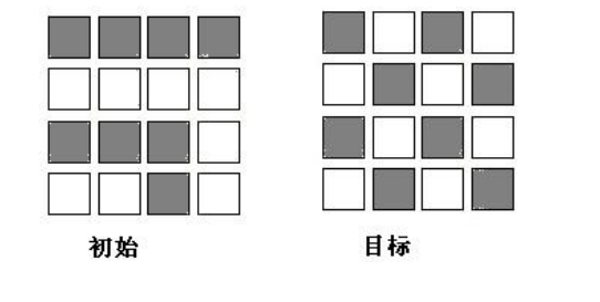 每次操作只能够交换相邻的两个格,柯南看到了初始锁的状态和目标锁的状态,同样组织只允许他用最少步数打开锁。
