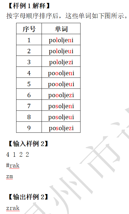 输出共一行一个单词,即按字母顺序排序后的第 X 个单词。