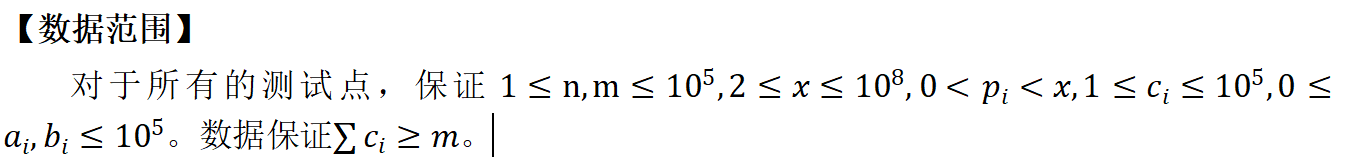 第一行包含三个正整数n,m,x,代表运输站点数量,货车数量和两市距离。