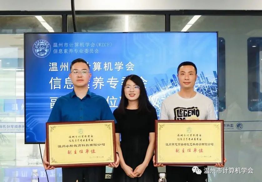 授予温州市思而睿培优艺术培训有限公司、温州小橙教育科技有限公司为信息素养专委会副主任单位。